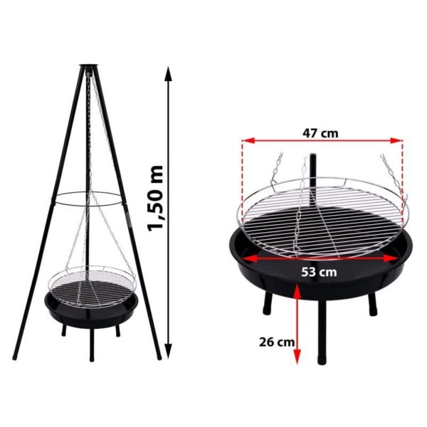 Kamin näeb välja väga muljetavaldav. See on suurepärane alternatiiv lõkkele. Grillipind on 1590 cm2, mis võimaldab valmistada mitu rooga korraga. Statiivigrill sobib suurepäraselt seltskonna koosviibimiseks.
